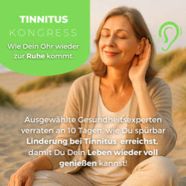 Herzliche Einladung zum online Tinnitus-Kongress– wie dein Ohr wieder zur Ruhe kommt. Ausgewählte Gesundheitsexperten verraten an 10 Tagen, wie du spürbar Linderung bei Tinnitus erreichst, damit du dein Leben wieder voll genießen kannst. Ein Online-Kongress vom 05.03. bis 14.03. mit vielfältigen Ansätzen, fundiertem Wissen und hilfreichen Tipps rund um Tinnitus, Hören, Nervensystem und innere Balance. Teilnahme kostenfrei.